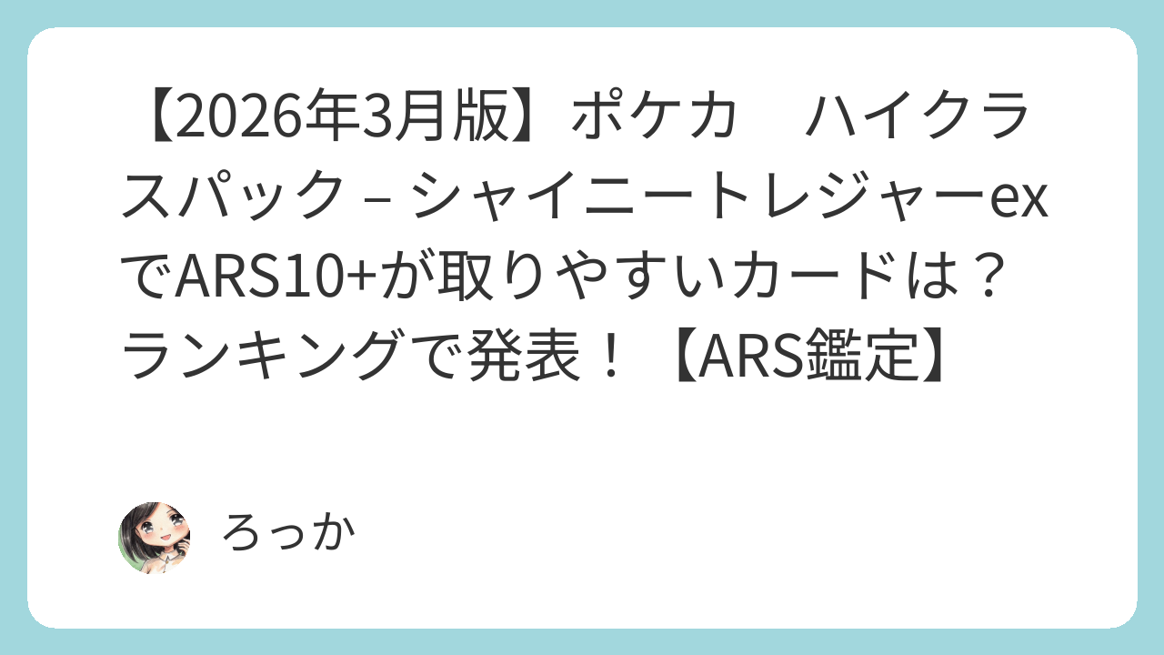 今回はポケカのハイクラスパック – シャイニートレジャーexで、ARS10+の取得率が高いカードをランキング形式で紹介します!