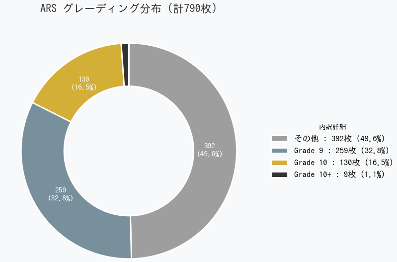 今回は、この青眼の白龍 レリーフについて、ARS鑑定の提出データをもとに「ARS10+の取得率」や「グレード別相場」を独自に集計・分析しました。