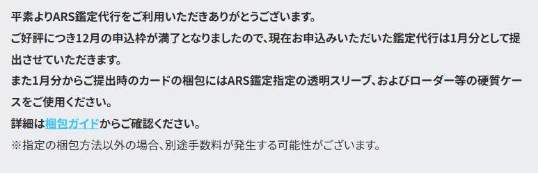 カルドバでのARS鑑定の申し込みは、公式のWEBフォーム入力ではなく、別な手順になります。また、梱包にはルールがあるので注意が必要です。