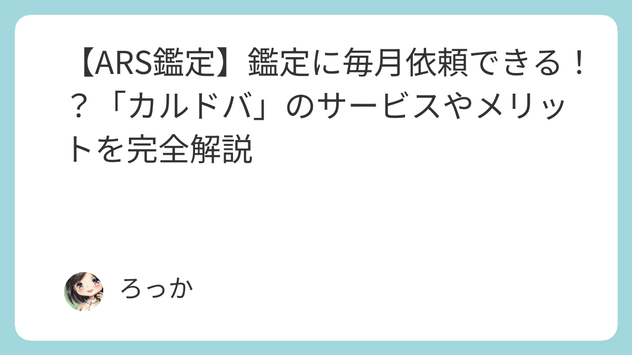 まだARS鑑定に出せていない方は、ぜひカルドバ経由での依頼を検討してみてはいかがでしょうか?