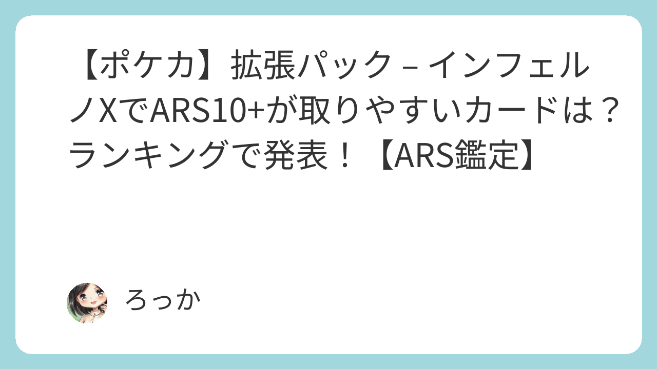 今回はポケカの拡張パック – インフェルノXで、ARS10+の取得率が高いカードをランキング形式で紹介します!