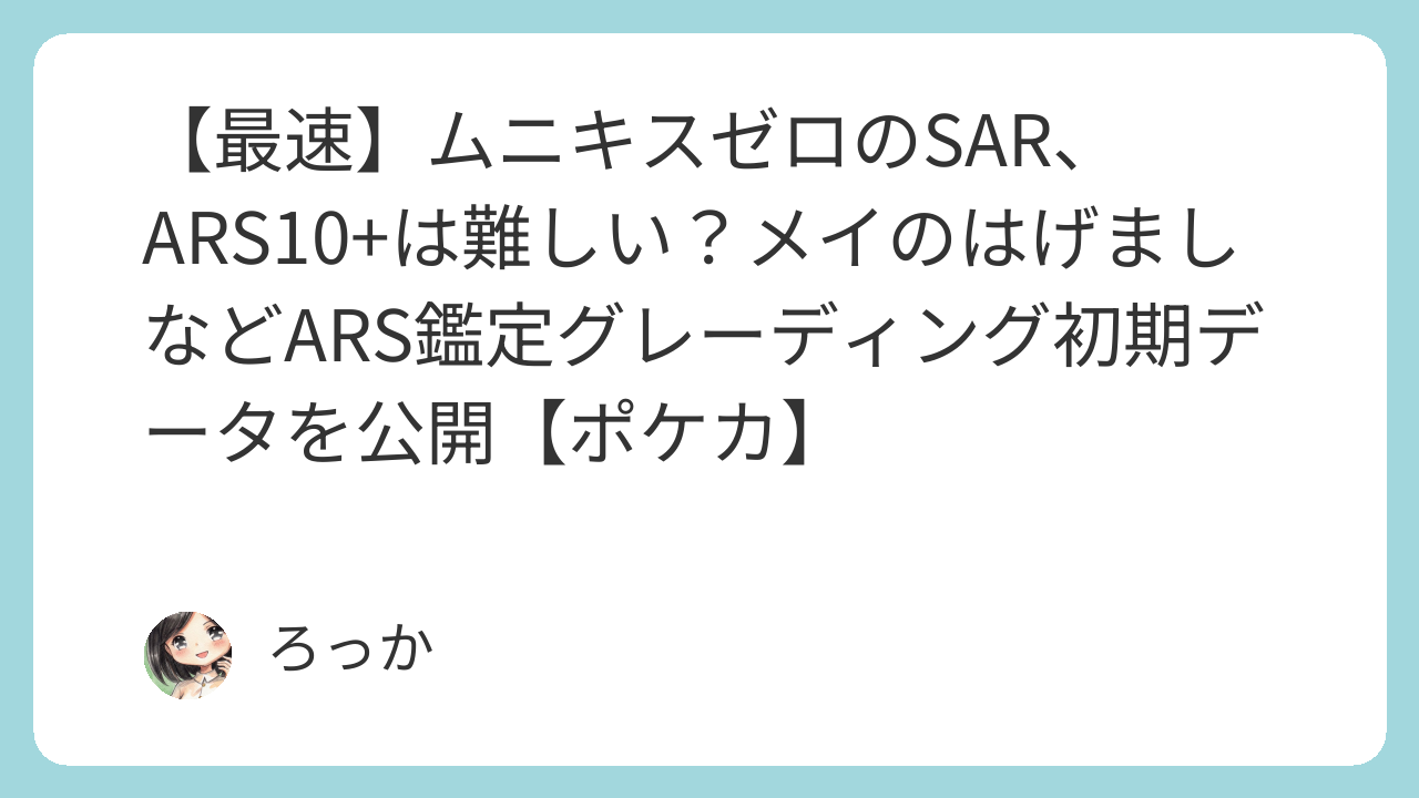 【最速】ムニキスゼロのSAR、ARS10+は難しい?メイのはげましなどARS鑑定グレーディング初期データを公開【ポケカ】