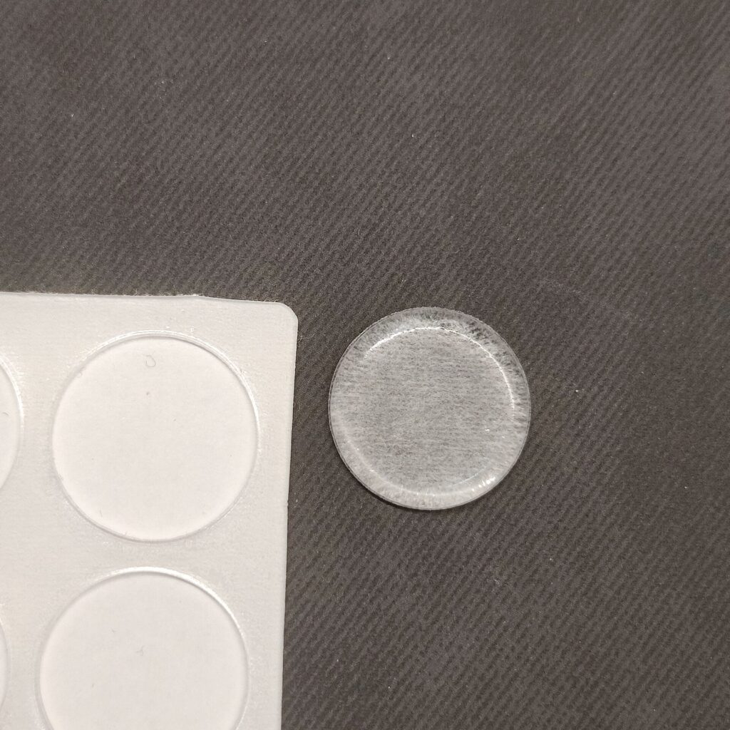 パッケージのシールにしたい部分「表裏両方に」両面テープを貼り、クッションシールを貼る。