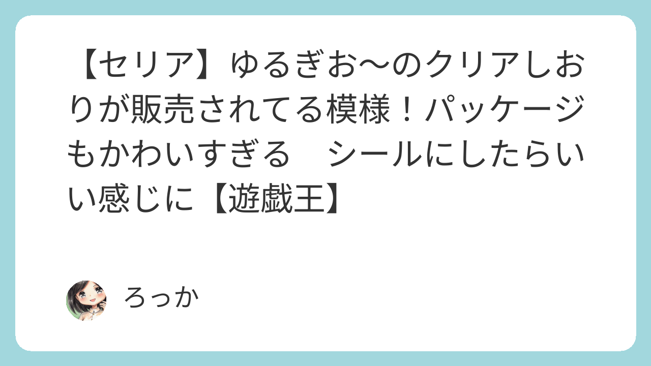 セリアにてゆる☆ぎ☆お~のクリアしおりが販売されている模様。