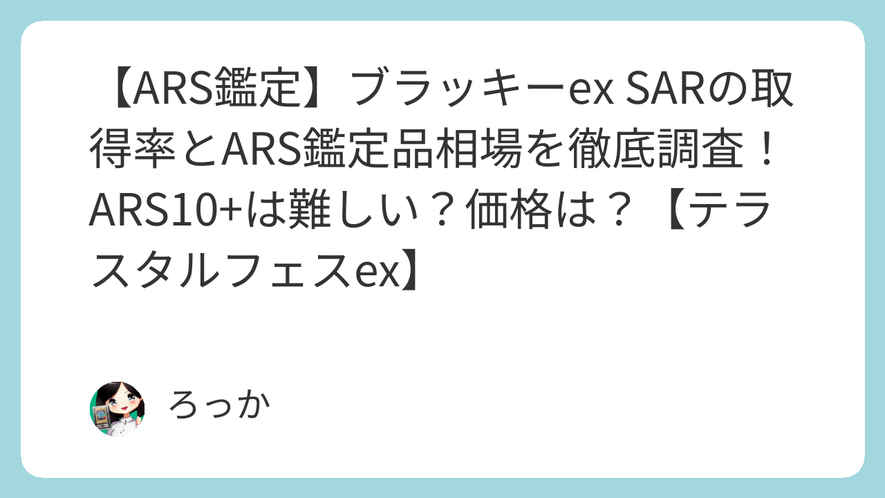 今回は、このブラッキーex SARについて、ARS鑑定の提出データをもとに「ARS10+の取得率」や「グレード別相場」を独自に集計・分析しました。