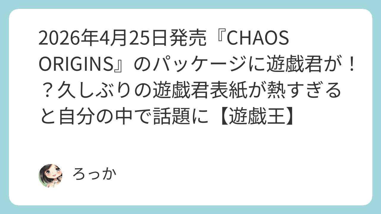 2026年4月25日発売『CHAOS ORIGINS』のパッケージに遊戯君が!?久しぶりの遊戯君表紙が熱すぎると自分の中で話題に【遊戯王】